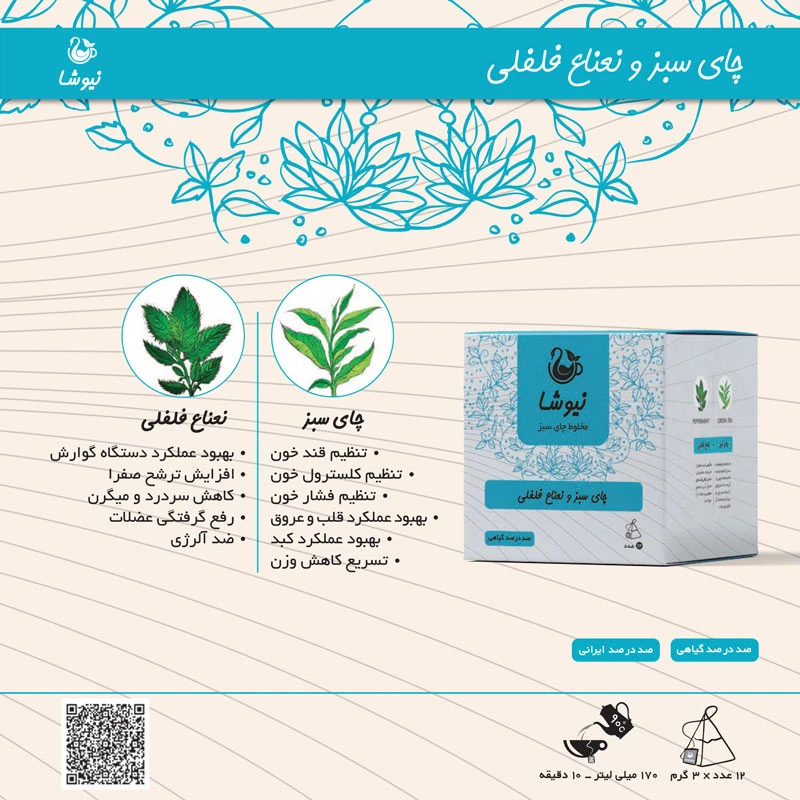 خواص سلامتی چای سبز و نعناع فلفلی مثلثی نیوشا